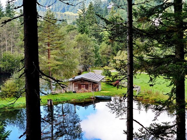 Die 2 großen Fischteiche gehören privat zur Almhütte. Sie liegt in der Nähe von Ramsau, umgeben von viel Wiese, am Waldrand. Der Ort Ramsau mit Geschäften, Hallenbad, Reitstall, Tennisplatz in 4,5km. Die Wanderregion Ramsau am Dachstein ist bekannt für herrliche Rundwanderwege vom Hochplateau 1100 - 1300 m über die Alm- und Hüttenregion 1700 - 1900 m bis zum Gletschergebiet des Dachsteins 2700 m. In 2km findet man außerdem noch Badesee, Kletterpark und eine Sommerrodelbahn.